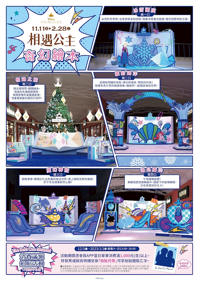「Mitsui Outlet Park 台中港」今年聖誕節打造「迪士尼公主」主題聖誕裝置,即日起夢幻登場,冰雪奇緣、仙度瑞拉、小美人魚、阿拉丁等人氣公主,現身台中港三井,粉絲們可以準備出發,再刷一波,IG美照打卡。