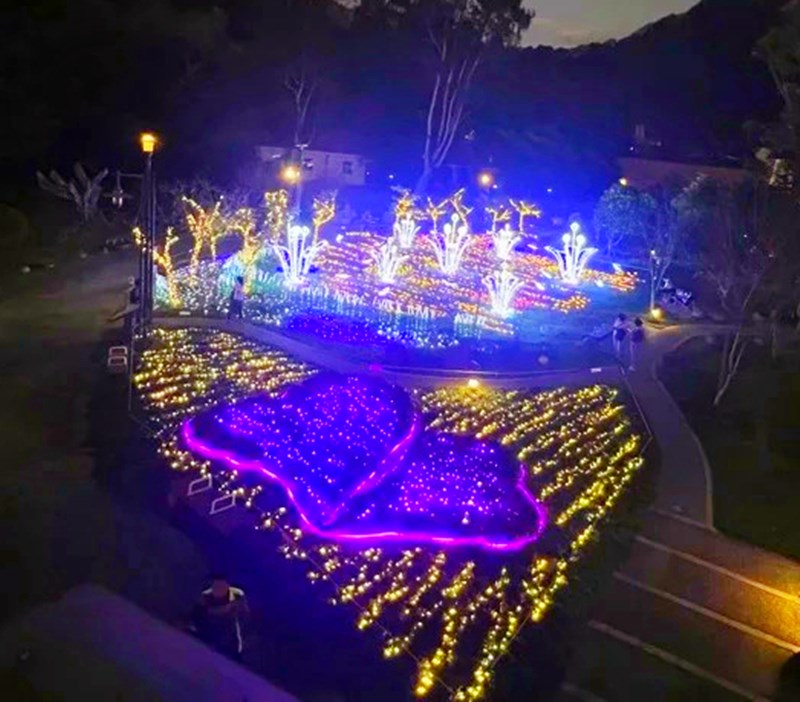 谷關部分在溫泉公園建造成「幻彩聖誕村」,夢幻的「光之花園」可看到繽紛彩虹步道,多座燈飾點亮山谷,浪漫度爆表,粉淤們可以來此走走賞燈拍聖誕樹,順道來場溫泉之旅也很是愜意。