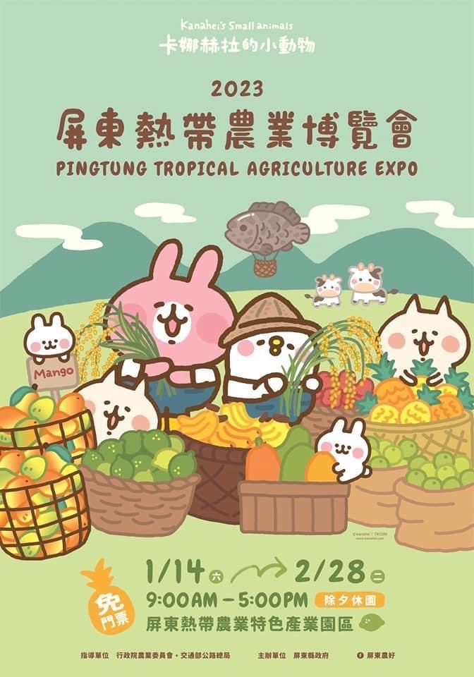 「2023屏東熱帶博覽會」將於2023/1/14~2/28日期間展開,今年邀請超人氣「卡娜赫拉的小動物」合作,打造巨型彩繪稻田,近日彩稻插秧已可看見超萌身影,帶展期正式開始時,圖案會更加明顯,令人相當期待。