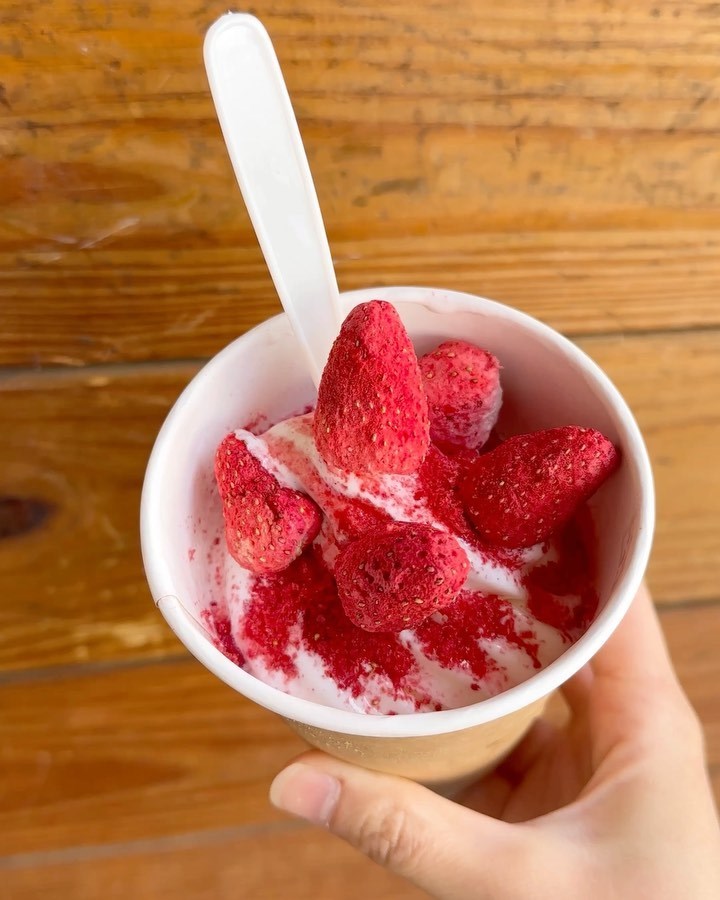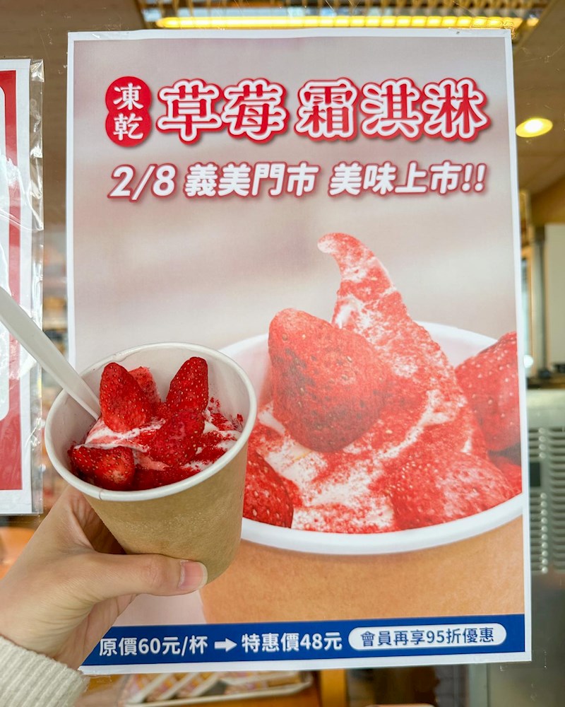愛吃草莓的新嘗鮮在這,義美在全台門市(部分除外)推出新口味霜淇淋「凍乾草莓霜淇淋」,不僅有滿滿奶香口感的霜淇淋,上頭還撒上蜜糖草莓粉與一顆顆酸甜草莓凍乾,吃起來超療癒,一杯現在還50元有找,太可以!
