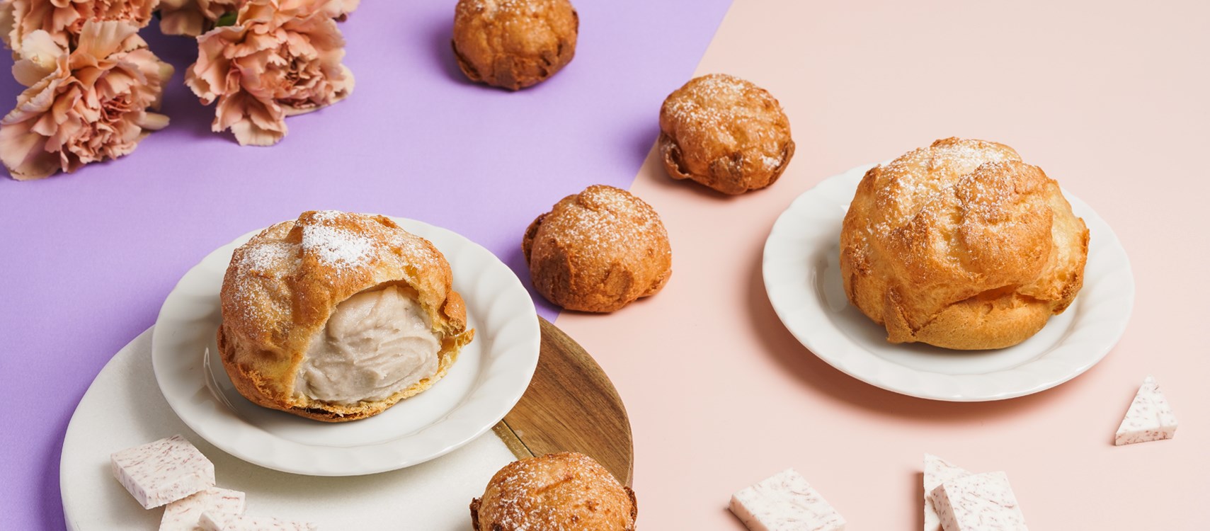 「芋泥奶霜泡芙」採用大甲檳榔心芋頭與Beard papa’s經典的發酵奶油與鮮奶油製成綿密內餡,搭配鬆軟的泡芙餅皮,香甜不膩口,芋頭控們千萬別錯過。