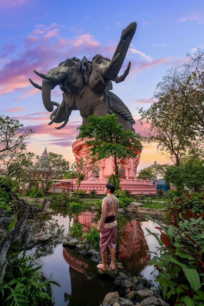 「三頭神象博物館」用磅礡建築、粉紅童話與宗教藝術打造出曼谷最療癒、好拍,又具文化深度的網美級場景!每一個細節都值得放慢腳步、盡情沉浸,感受如夢似幻的旅程。