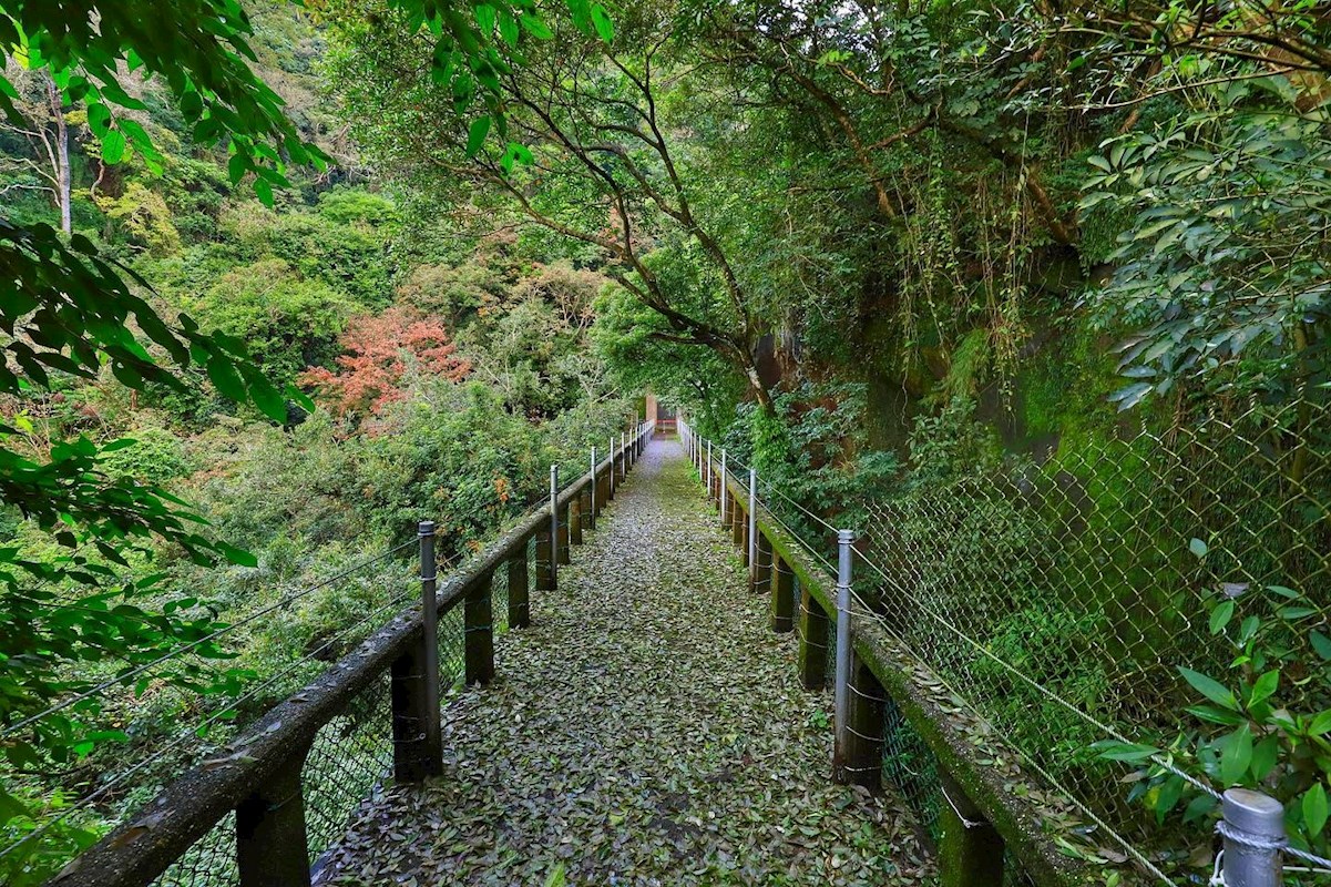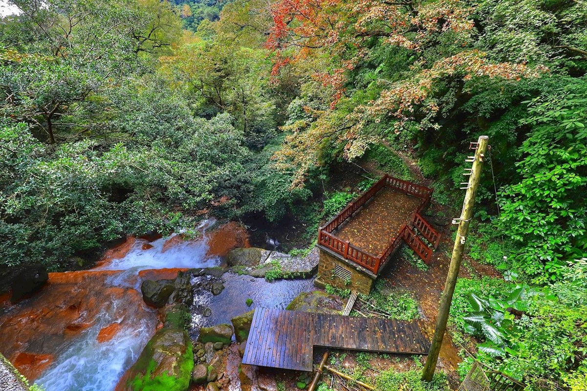 這趟旅程除了可以品嘗到甘甜的「藍寶石礦泉水」,還像是一場有趣的叢林冒險!行走在陽明山森林步道中,穿越被自然磺氣染成金色的「草山水管橋」,橋下清澈溪水潺潺流過,兩側綠意盎然,彷彿闖入一座隱世秘境。