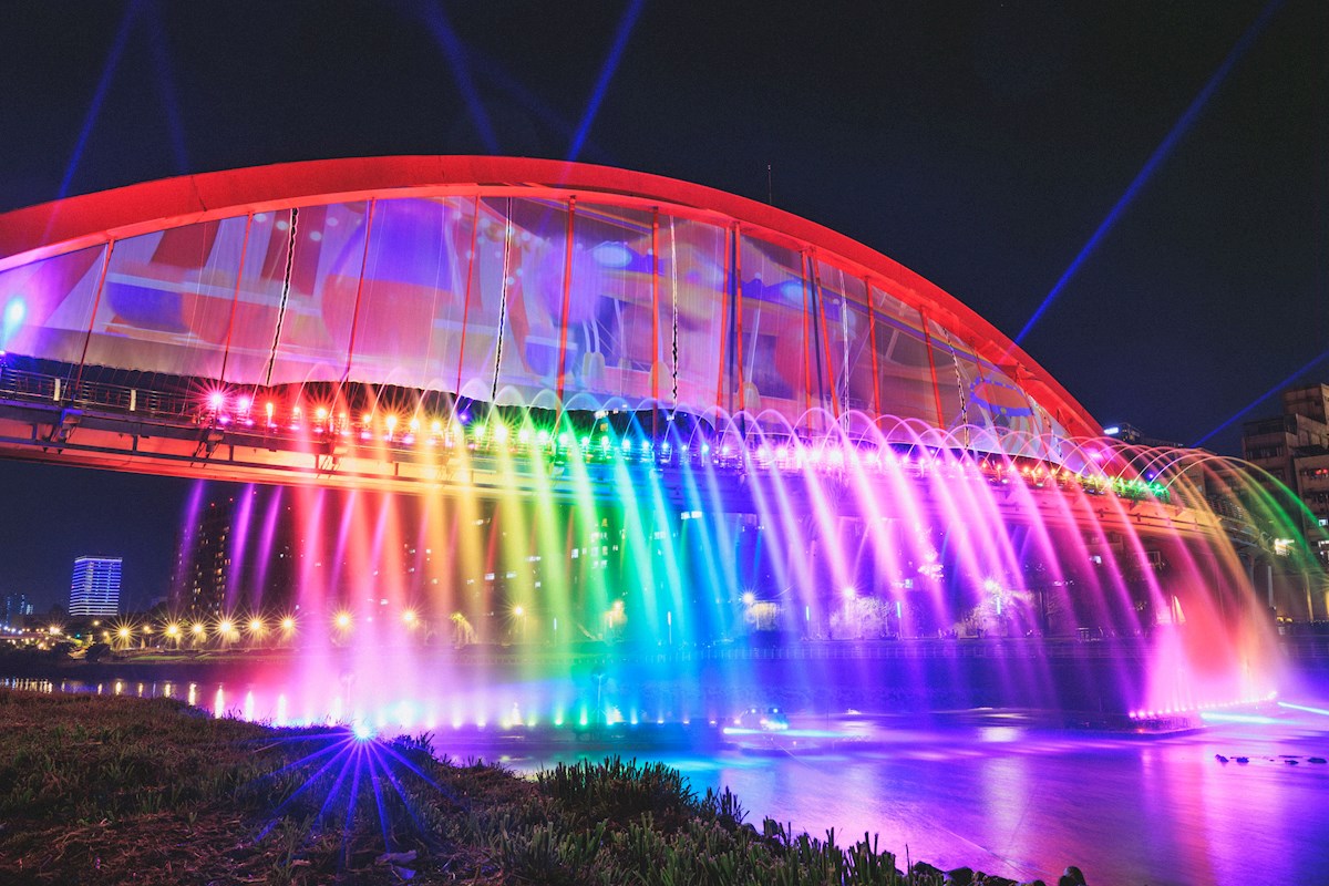今年嘉年華最大亮點在於全台唯一的「雙水舞場域共演」,結合彩虹橋水幕與基隆河河面120米的水舞平台,橋面與河面同步演出,配合流行音樂、水柱、雷射及燈光特效,震撼又浪漫,尤其開幕日和10月4日的追愛音樂祭,還能欣賞限量「水火共舞」煙火秀,呈現火與水交織的感官饗宴。