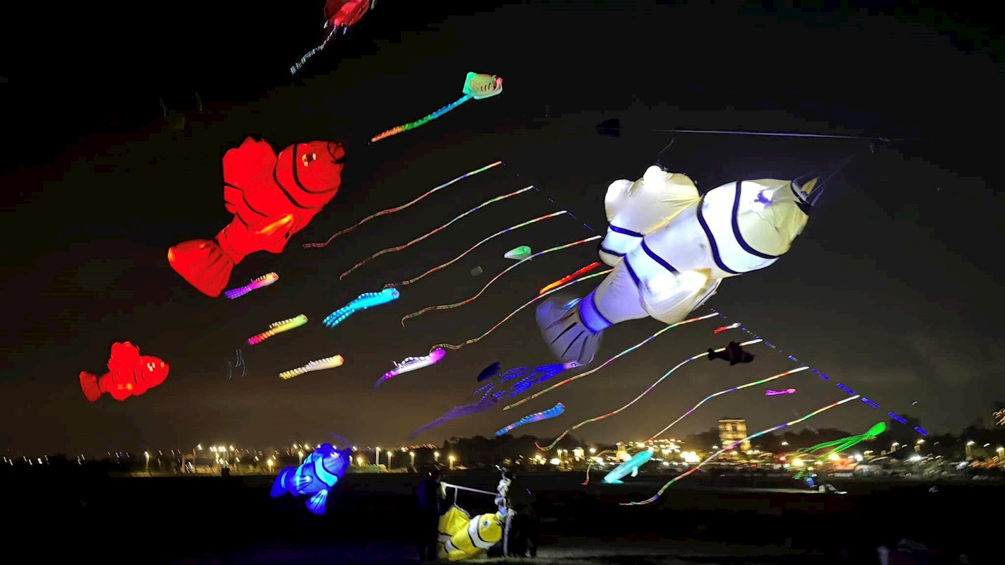 晚上限定的「夜光風箏秀」更是夢幻,巨型發光骷髏、夜行太空人、彩色外星生物、小魚尾獅光彩奪目,夜空被點亮成宇宙燈會,絕對讓你感受到科技感十足的宇宙奇幻之旅。