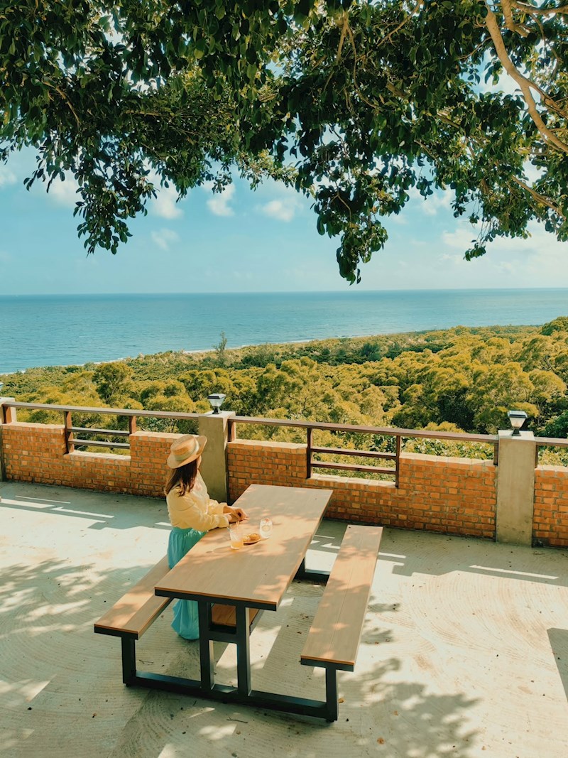 室內空間溫馨乾淨,有冷氣開放,是避暑好據點;戶外則有大片紅磚露台和遮陽大樹,讓你在夏日的海風中喝咖啡吹風,療癒滿分。