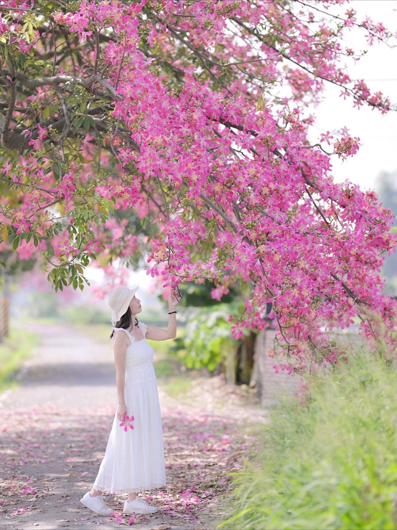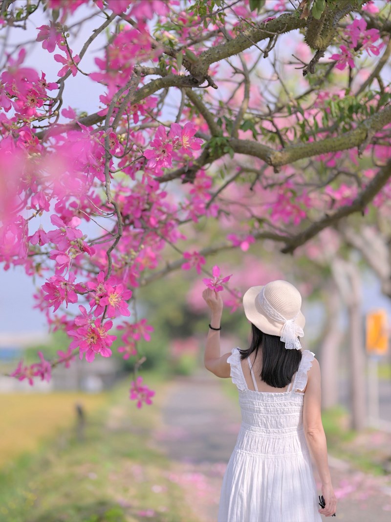 今年步道花況特別優秀,因為剛完成整修修剪,樹型更挺拔美麗,花朵更密集,色澤粉嫩飽滿。花期雖將結束,但這正是遊客減少、拍照環境更舒服的黃金時刻,無論想早晨享受柔和陽光,還是傍晚感受微涼風情,都能捕捉到屬於自己的浪漫花景。