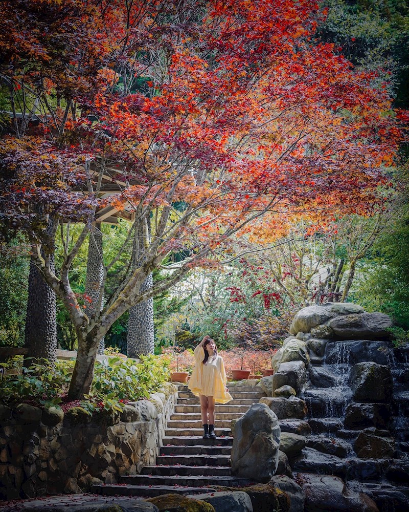 早晨微霧繚繞,大自然輕輕呼吸的聲音伴隨紅葉細語,午後的陽光灑下,更襯托出楓葉璀璨色彩!建議漫步松瀧岩步道,感受森林秋意濃厚,可以順道欣賞瀑布水聲,讓賞楓氣氛更饒富詩意。