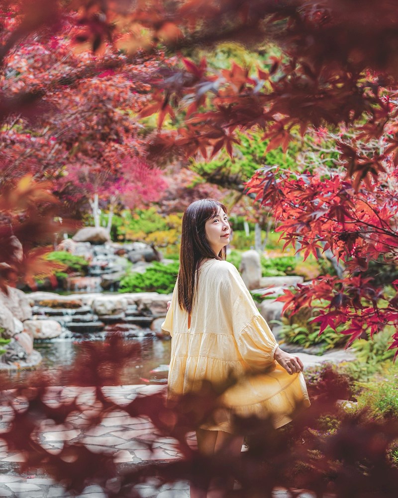 杉林溪的楓葉季絕對是秋季的一大亮點。園區內種滿了青楓、紫葉槭與楓香,超過4000多棵不同品種的楓樹漸變色彩,打造出層層疊疊的火紅海洋。當青楓葉由綠轉紅,整座森林就像著上了紅色禮服,飄著浪漫落葉,步道兩旁鋪滿紅色地毯,讓人恍如置身秋天童話故事。