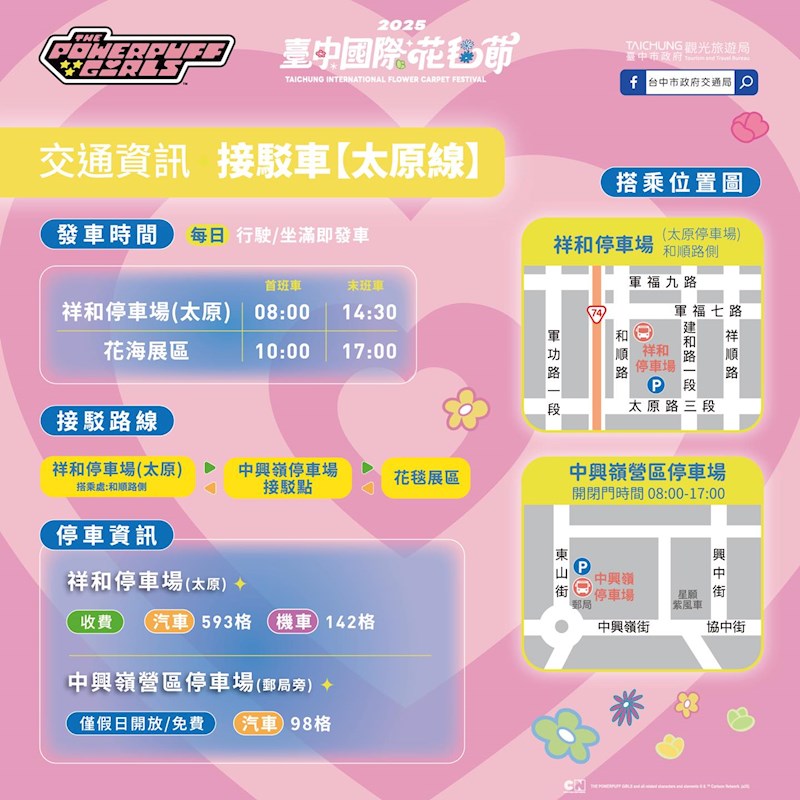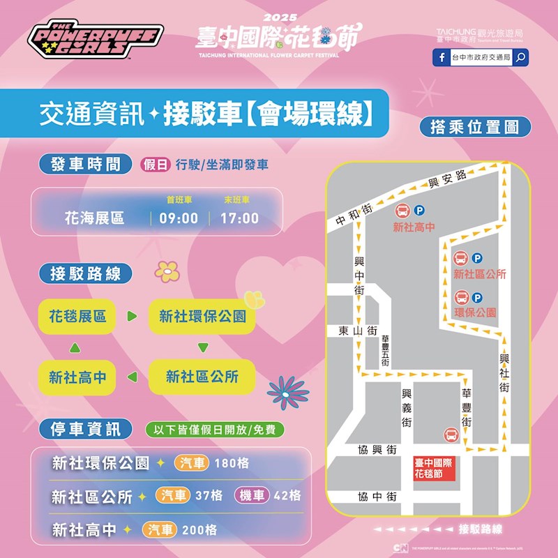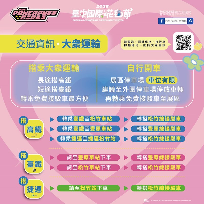 交通方面,主辦單位貼心安排多條免費接駁車路線,搭配台鐵高鐵便捷轉乘,讓你輕鬆抵達現場,避開停車和塞車煩惱。展區還貼心設置無障礙服務,讓每個人都能享受這場花海盛宴。