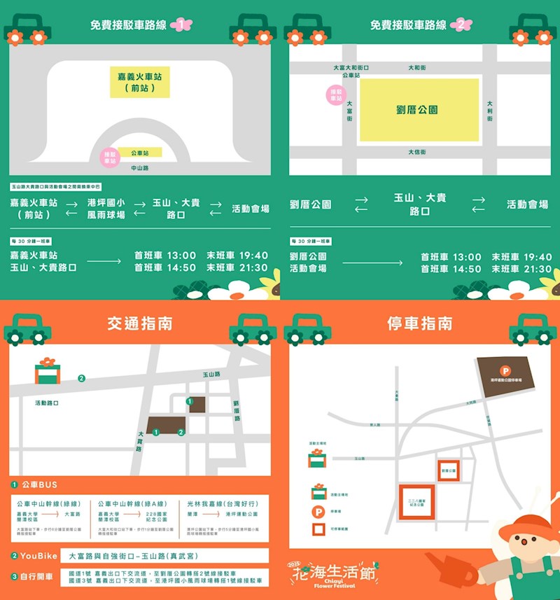 交通:免費接駁車連結嘉義火車站、劉厝公園及活動會場