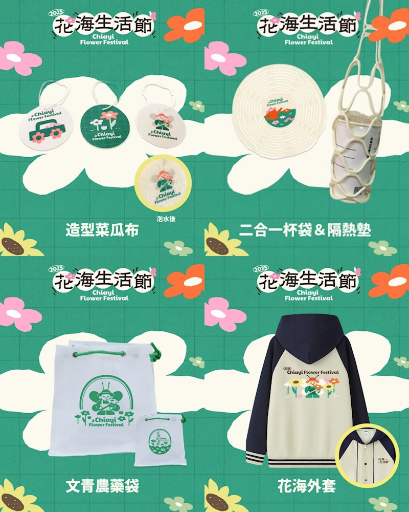 現場還有熱情的音樂表演及多樣手作工作坊,讓你在賞花之餘,體驗嘉義在地文創與音樂的魅力。為回饋粉絲,活動期間出示拍照打卡於服務台分享,即可獲得限量木漿棉洗碗布與農藥袋,數量有限送完為止!此外,手作坊內容豐富,如香氛擴香瓶、花形蠟線手繩與養生花果茶體驗,趣味滿分,適合大小朋友共度美好時光。