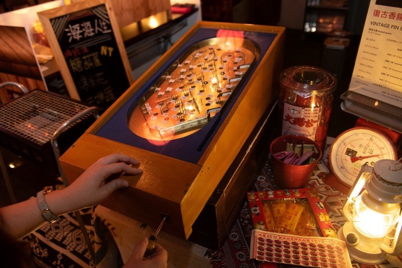 ▲除了有夜市小吃外,還有復古彈珠台可以同樂,限定高空夜市只到農曆佳節
