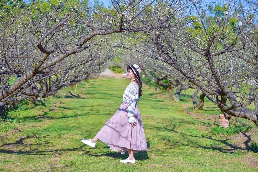新社許多人想到的就是賞花海,但其實這裡也有一處熱門的賞梅景點,種植在麻竹坑溪堤岸兩側,低矮的梅枝交織成梅花隧道,彷彿觸手可及,有些地段還需要蹲低才能通過,特別有趣!